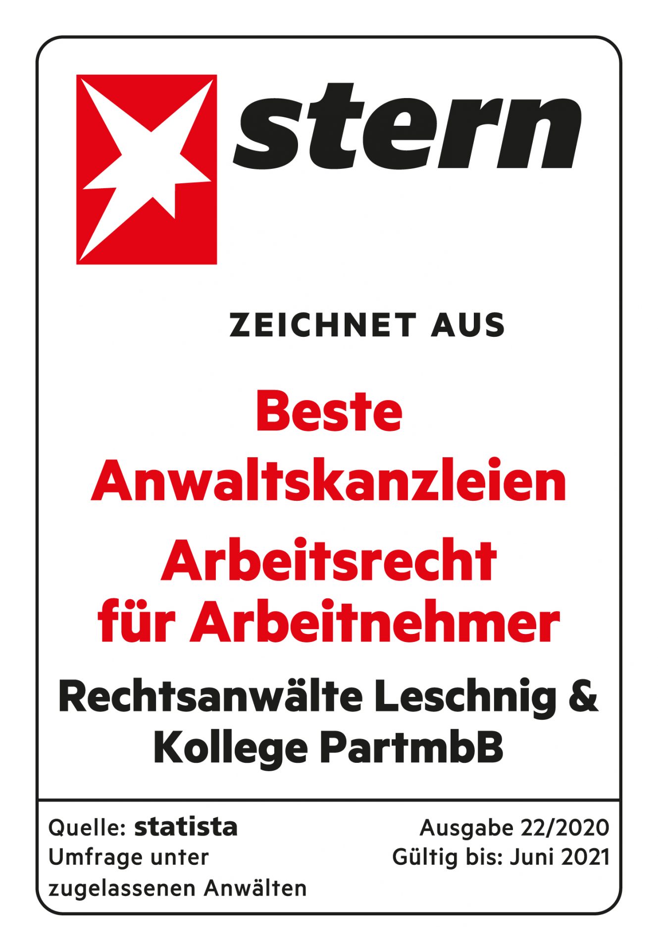 Leschnig & Coll. in der Top-Anwaltsliste des Stern » Weiterlesen